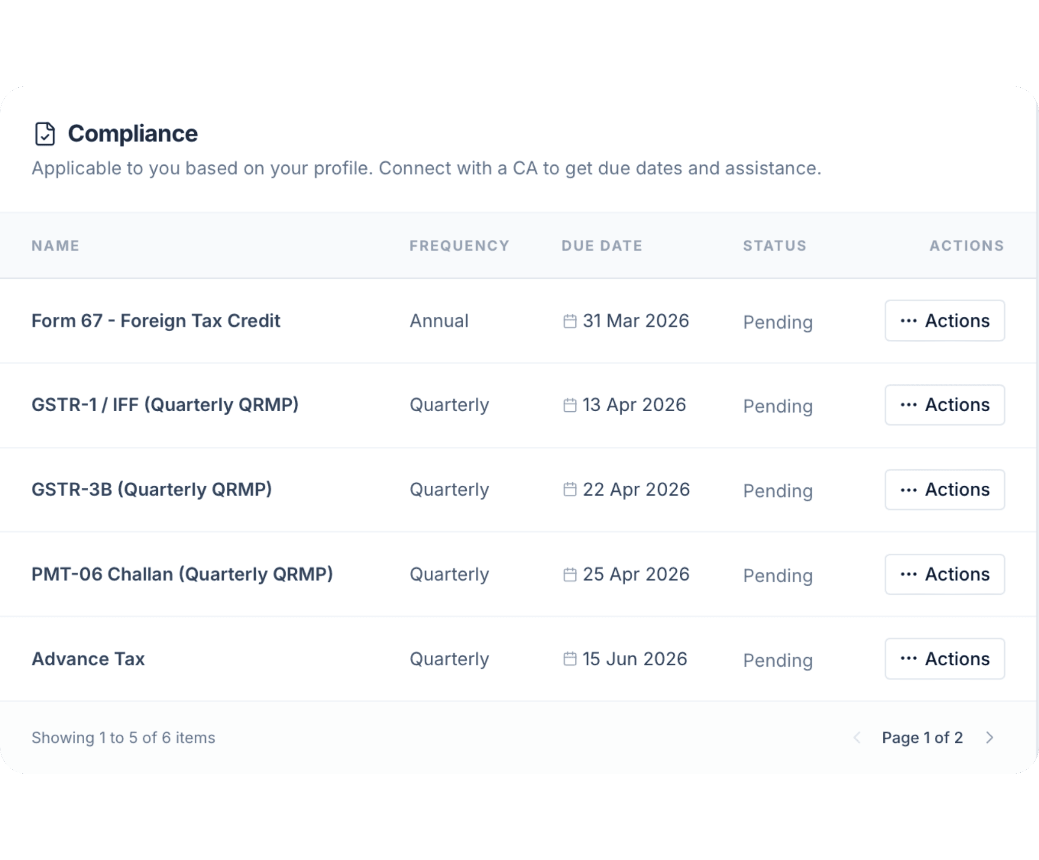Indian businesses are legally required to file returns across GST, income tax, MCA, and more throughout the year. Missing a deadline can mean penalties for forms you didn't even know existed. Adysor builds you a personalised compliance calendar based on your business profile, showing every filing you owe with due dates and email reminders. Free, personalised, and always up to date.