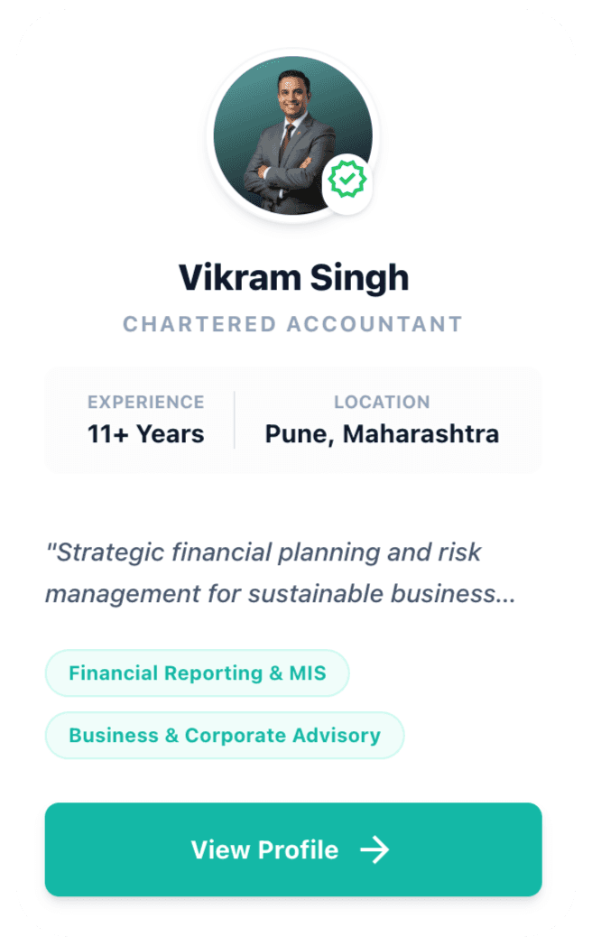 You can browse verified CA profiles based on services offered, expertise, experience, language, and location. Each profile includes relevant details to help you choose the right advisor for your needs.