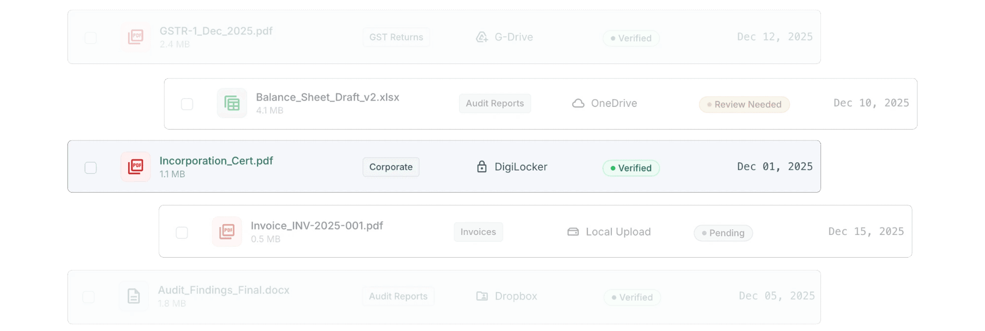 Track client engagements, documents, and next steps in one workspace instead of scattered emails, sheets, and WhatsApp threads.
